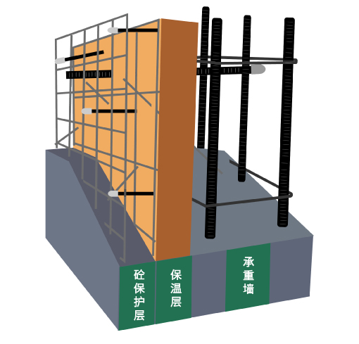 SD現(xiàn)澆混凝土內(nèi)置保溫體系是將保溫板一側(cè)用鋼筋網(wǎng)架作支撐架,通過鍍鋅插絲穿過保溫扳并留有長(zhǎng)度,做成SD鋼筋網(wǎng)架保溫板,內(nèi)置于澆筑結(jié)構(gòu)鋼筋外側(cè),同時(shí)采用ф8鋼筋作為連接件,依次由內(nèi)向外澆筑結(jié)構(gòu)層和保護(hù)層的混凝土,形成內(nèi)置保溫體系。適用于嚴(yán)寒、寒冷和夏熱冬冷地區(qū)有保溫隔熱要求的高層、多層和低層的居住建筑和公共建筑。